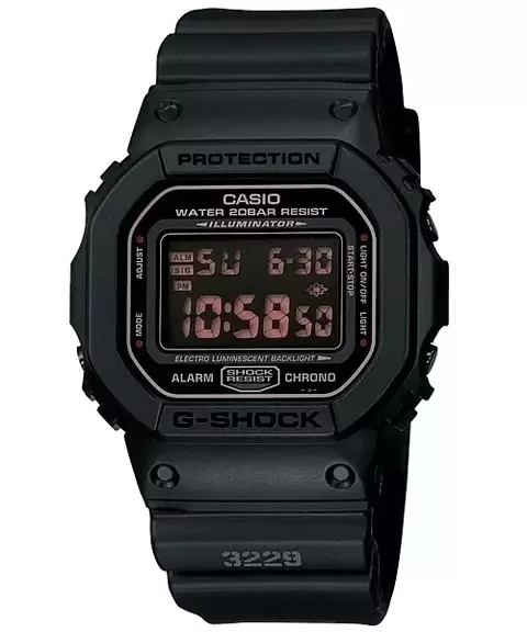 Diseñado con inspiración militar, el G-Shock DW-5600MS-1 destaca por su acabado completamente negro con detalles en gris mate, brindando una apariencia sobria y funcional. Su construcción robusta y su resistencia al agua de 200 metros lo hacen perfecto para actividades exigentes, tanto en exteriores como en el día a día.